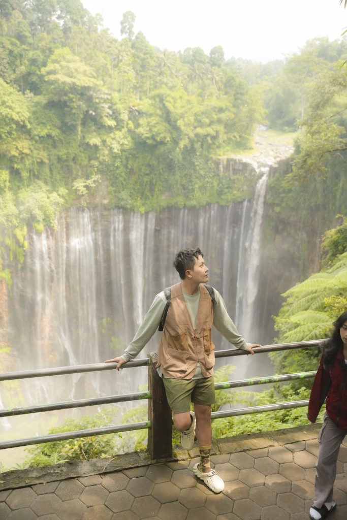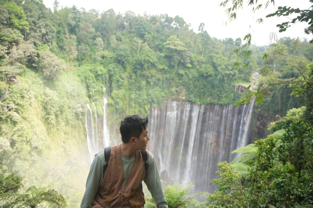 🌊 Hành trình mở ra với trải nghiệm trekking xuống thác Tumpak Sewu, nơi bạn băng qua rừng rậm, leo những bậc đá phủ rêu và vượt các đoạn dốc trơn trượt để chạm đến chân thác. Giữa không gian nguyên sơ, hàng chục dòng nước từ vách núi cao đồng loạt đổ xuống tạo nên khung cảnh hùng vĩ, vang vọng giữa đại ngàn.